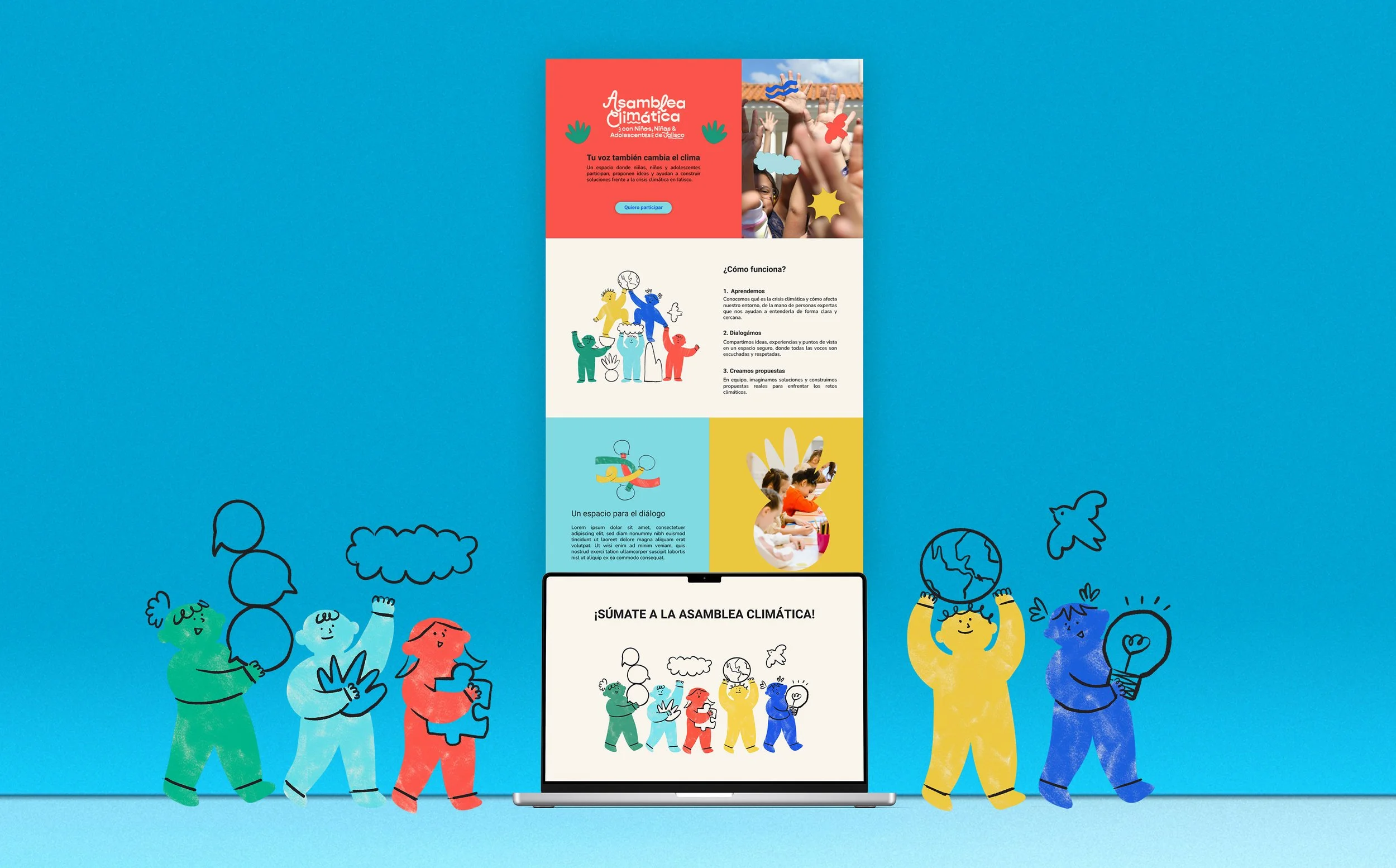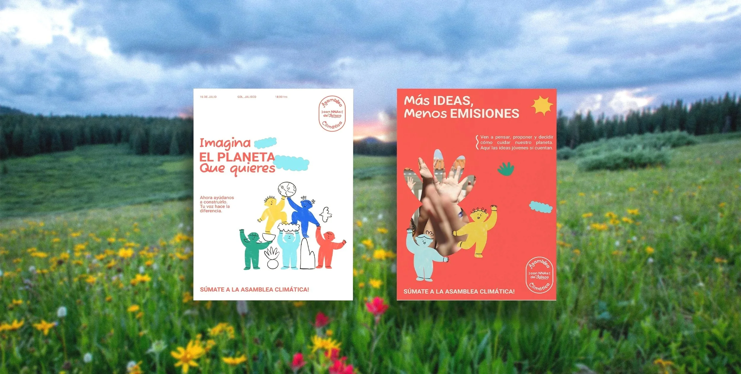El branding de Asamblea Climática fue diseñado para crear una identidad visual cercana, dinámica y accesible que conecte con niños, niñas y adolescentes, invitándolos a participar activamente en la conversación sobre el futuro del planeta.