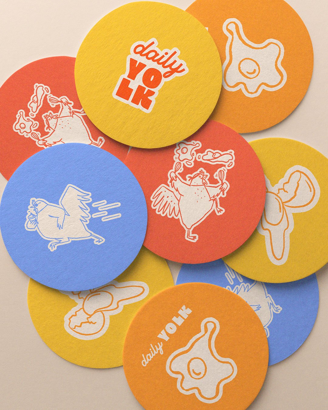 El alma de la identidad son nuestras gallinas originales y cool, ilustradas con un estilo de línea que les da carácter y carisma. Cada personaje añade humor, actitud y una dosis de ternura a la marca, haciendo que Daily Yolk sea imposible de olvidar.